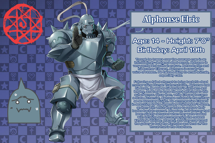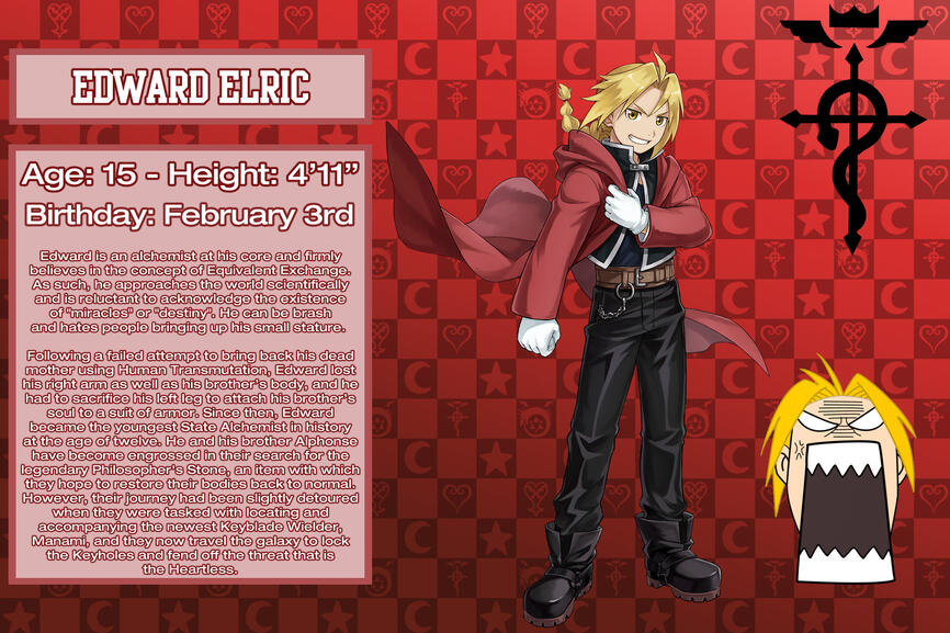 (This will be updated as we go along)So the FullMetal Alchemist characters replace Final Fantasy characters in this Kingdom Hearts universe?